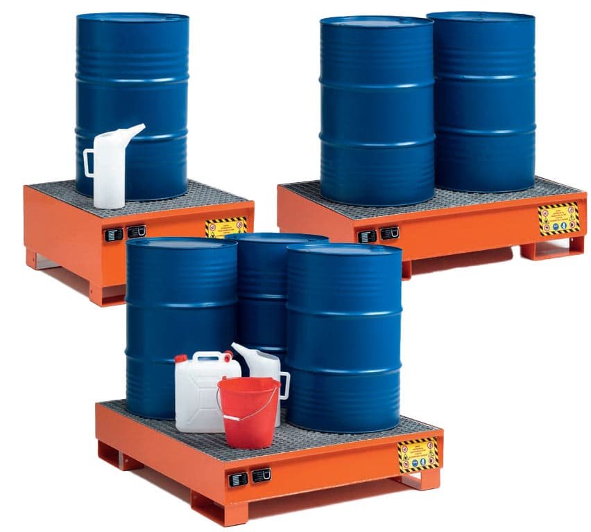 3. Caillebotis galvanisé amovibles : Les bacs de rétention sont équipés de caillebotis galvanisés amovibles, offrant une surface de support solide et sûre pour les contenants stockés. La galvanisation assure une protection contre la corrosion, prolongeant ainsi la durée de vie utile des caillebotis et garantissant leur intégrité structurelle dans divers environnements de stockage.